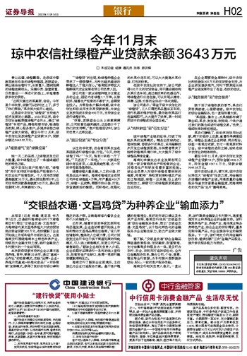 今年11月末 琼中农信社绿橙产业贷款余额3643万元