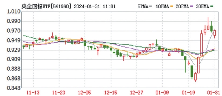 值得一提的是,受上述利好影响,近期央企概念、“中字头”备受市场青睐。央企回报ETF(561960)连续五个交易日收阳。1月29日,尽管A股出现调整,但央企回报ETF仍以上涨0.82%报收。