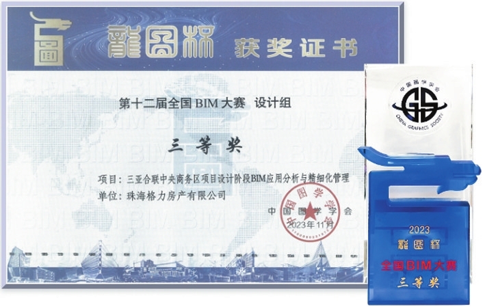 “龙图杯”全国BIM大赛发起于2012年,是推动BIM技术在我国建筑行业广泛应用的重要学术会议和具有影响力的赛事。本次大赛共收到设计、施工、综合、“一带一路”、院校五个组别的2559项成果,其内容涵盖BIM应用的各个阶段,参赛单位来自全国各地。“三亚湾壹号项目设计阶段BIM应用分析与精细化管理”项目荣获“龙图杯”全国BIM大赛设计组三等奖。