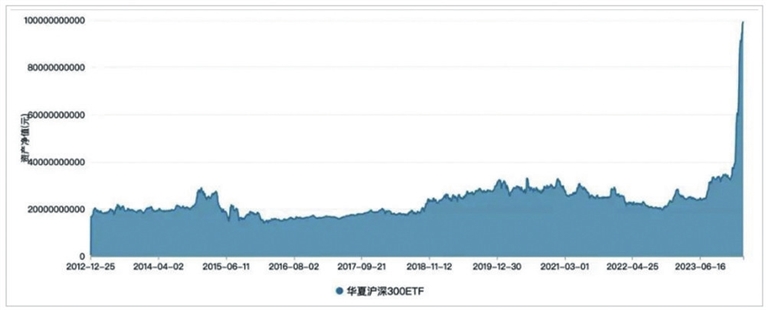 3月11日晚间,上交所披露的最新数据显示,华夏沪深300ETF总规模达到1006.35亿元,突破千亿元大关,由此成为继华泰柏瑞沪深300ETF、华夏上证50ETF、易方达沪深300ETF、嘉实沪深300ETF之后,第五只规模站上千亿元大关的股票ETF。