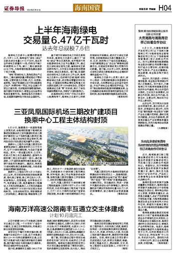 上半年海南绿电 交易量6.47亿千瓦时