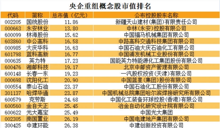 从央企市值角度来看,市值最小的是国统股份,最新市值不足12亿元;永安林业、林海股份、中公高科等市值不足20亿元。值得一提的是,部分个股已经出现大幅异动。其中,长春一东连续涨停,航天长峰、航天动力等7月底至8月初的股价也出现大幅异动。