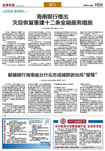 海南银行推出灾后恢复重建十二条金融服务措施