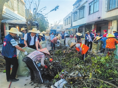 在潭牛人民革命纪念园一带,海南省教育厅与邮储银行海南省分行主要负责人带队,同时组织党员志愿者70多名帮助清障,共协调了两台抓枝清障车、两台垃圾运输车到现场,与居民一起齐心协力恢复美好家园。“快些,再快些,这些东西不清走马上就会腐烂,滋生病菌。”邮储银行志愿者吴先生说。志愿者们干劲十足,不惜体力,与潭牛镇居民们共同战斗,得到了现场的居民的肯定和赞扬,展现了志愿者们协助潭牛居民们重建家园的拳拳之心。