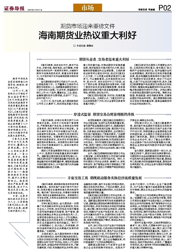 10月11日,发文当晚,金元期货就组织公司员工认真学习,深刻领会其重大深远意义和丰富内涵,对推动期货市场高质量发展,更好地服务中国式现代化大局,服务海南自贸港建设作出全面部署。王鸿武接受证券导报记者采访时说,经过对《意见》八大方面、十七项重点政策举措进行认真学习,可以清晰看到,这次是按照到2029年、到2035年、到本世纪中叶三个阶段,设计了层次合理、层层递进的发展目标,勾画了期货市场未来发展的清晰图景,是我国期货市场发展历程中具有里程碑意义的指导性、纲领性、综合性文件。