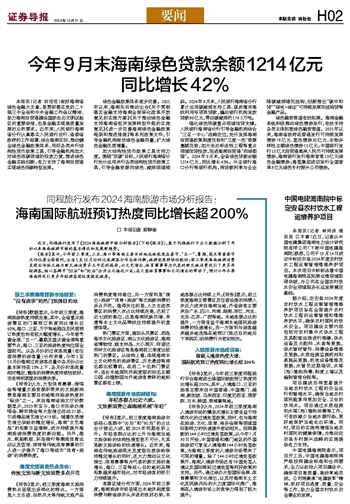 今年9月末海南绿色贷款余额1214亿元同比增长42%