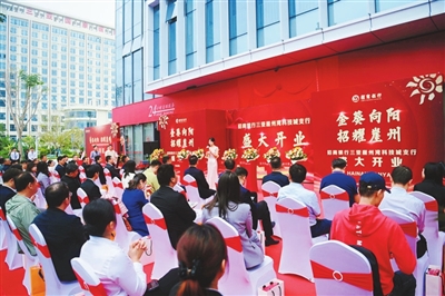 本报讯(记者 郭静瑜)近日,招商银行三亚崖州湾科技城支行正式挂牌开业。三亚市政府相关部门负责人、企事业单位代表、嘉宾等100余人参加了开业活动。