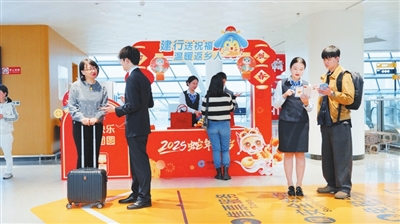 本报讯(记者 洪佳佳 通讯员 林思彤)2025年春运期间,建设银行海南省分行举办“港湾送祝福 温暖返乡人”志愿服务活动,组建“张富清金融服务队”,在火车站、汽运站、港口码头等地设置劳动者港湾金融服务台,为往来旅客提供周到便捷的金融服务,并送上“福”字、春联以及可爱的“湾宝”布娃娃,温暖寒冬游客归乡路。