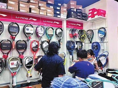 除了场地、爱好者人数激增外,网球热还体现在网球相关用品消费的增长上。