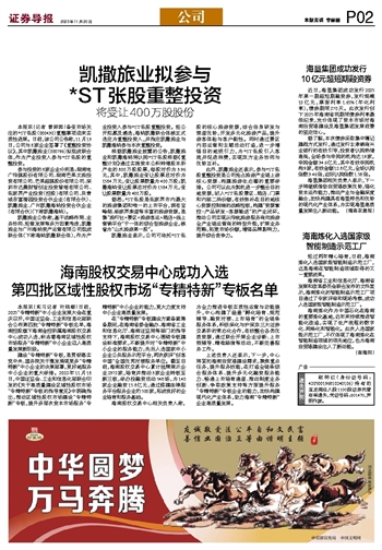 本报讯(记者 曾丽园)备受市场关注的*ST张股(000430)重整事项迎来实质性进展。日前,该公司公告称,11月13日,公司与8家企业签署了《重整投资协议》,其中凯撒旅业(000796)拟组成联合体,作为产业投资人参与*ST张股的重整投资。
