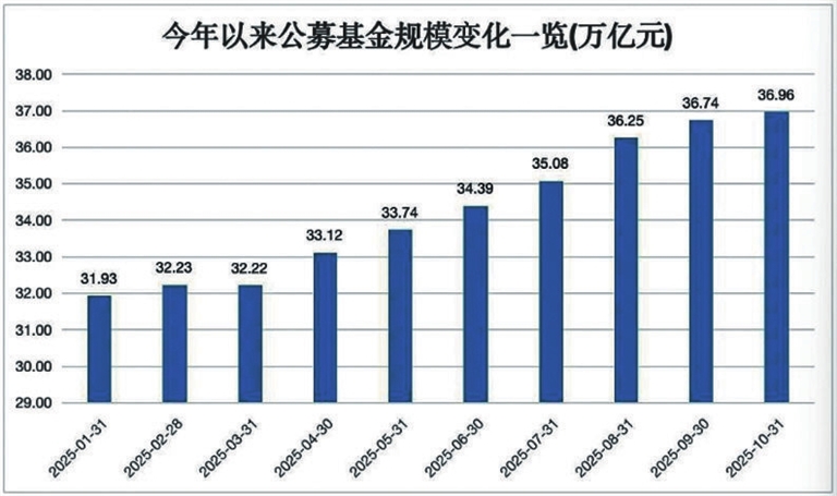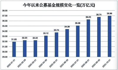 11月28日,中国基金业协会发布的最新一期公募基金市场数据显示,截至今年10月底,公募基金总规模达到36.96万亿元,连续七个月创出历史新高。