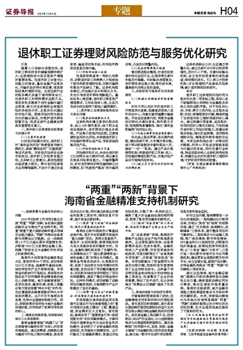 “两重”“两新”背景下 海南省金融精准支持机制研究