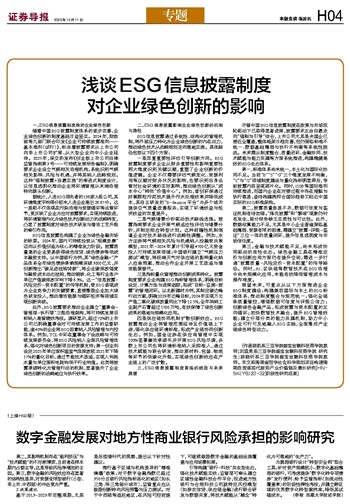 浅谈ESG信息披露制度 对企业绿色创新的影响