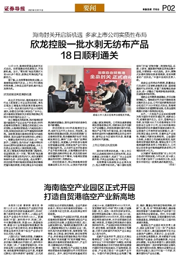 欣龙控股一批水刺无纺布产品 18日顺利通关