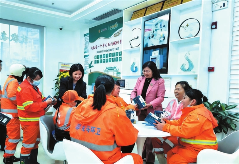 秋风送爽,贴心服务在身边。农行海口龙祥支行工会驿站携手当地社区,面向户外女劳动者群体开展专项慰问活动,邀请她们走进网点厅堂,围坐一堂,学习实用的储蓄理财技巧和反诈知识,现场问答互动热烈,内容干货满满。活动中,该支行还为大家准备了雨伞、保温杯等暖心礼物。一份份心意递到手中,一张张笑脸格外灿烂。此次活动以真挚关怀与实用服务,向户外女劳动者传递了尊重与温暖,彰显了工会驿站的热忱服务。