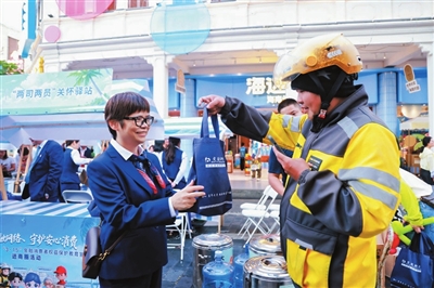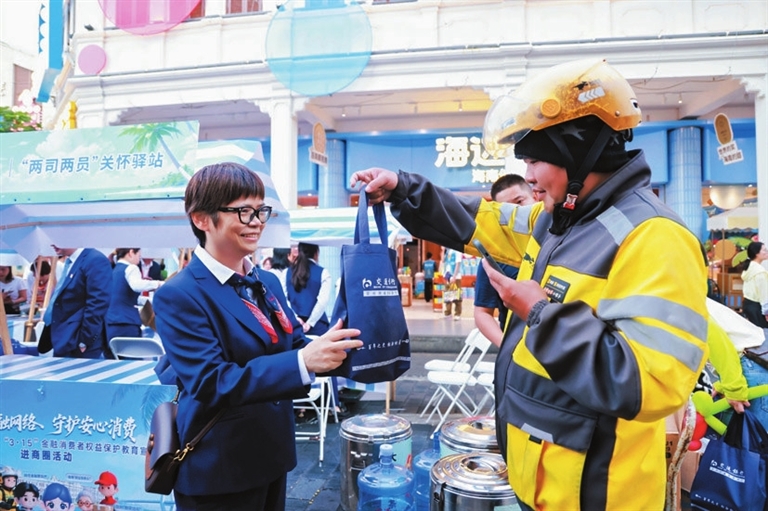 “惠民集市”设置11个主题展位,涵盖消费者权益保护、养老金融、数字人民币等内容。市民完成消费者权益保护问题挑战即可收集印章兑换礼品,部分提振消费展位还推出消费满减、免费试吃等优惠活动。现场同步设置“关爱驿站”,为“两司两员”(货车司机、网约车司机、外卖员、快递员)免费发放关爱礼包,提供海南特色饮品等暖心服务,传递交行温度。