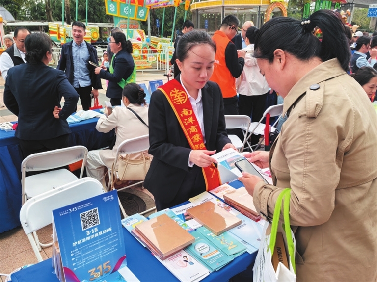 与此同时,南商中国海口分行参加“2026年海南金融业‘3·15’金融消费者权益保护教育宣传活动”。在“金融集市”互动区,通过悬挂宣传横幅,设立宣传台、易拉宝,发放宣传折页、各式小礼品等方式,工作人员手持印有“投资理财要留心 超高回报别动心”“转账不能私对私 无凭无据不理会”等风险提示的手举牌。他们邀请广大市民参与互动,结合典型案例向市民讲解金融便民利民政策、个人征信、存款保险知识,以及防范虚假宣传、非法中介、电信网络诈骗、非法集资的技巧。