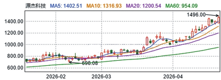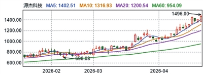 4月22日,源杰科技最高价为1496元/股,再超贵州茅台股价。